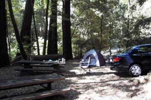 R and I went on our first camping trip! I’m so proud of us. We’ve been talking about it for a year. Since I’ve been on vacation, I thought it would be fun to go camping overnight after I got back from Spokane. We went to Memorial Park in San Mateo County. It’s about an hour drive from us, and in the Santa Cruz Mountains. It’s up Highway 1, off Pescadero road. It took us about a half an hour to pack since R had everything we needed in his Pack. We picked up some cup-o-noodles at Safeway on our way for our dinner.