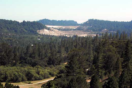 And here is the gorgeous view. Unfortunately, it looks like they did some mining and scarred the landscape 😦 . Yes, those are rare Coast Redwoods (Sequoia sempervirens) that have been raped from the landscape. It sucks. I love redwoods trees. They are super tall and some are so old that experts don’t even know how old they are. There is one in Big Basin that is over 2,000 years old! Imagine, a tree that has been around as long as Christ! Being around them is amazing. It is almost spiritual. So when I see them stripped from the landscape I get bummed. They only grow along a very narrow strip of land on the California and Oregon coast, and that is it.
