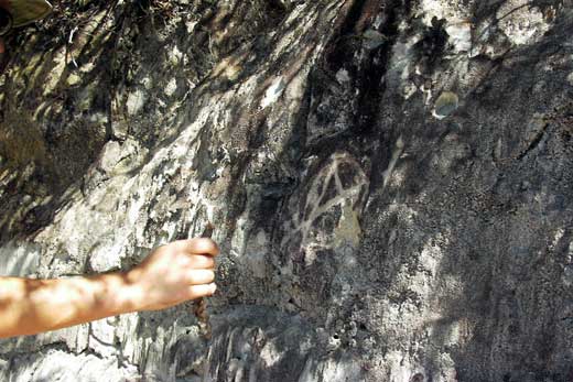 We took this trail called “Sunset Trail”. It’s a mile climb to the top of ths peak that overlooks Zayante Valley. On the way up there are carvings in the sandstone and it kind of looks like grafitti. It’s harmless grafitti, though, since the rain will wash it all away in the winter. Raffa added his own scrawl: