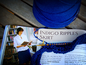 My week of knitting has had a false start. I cast on my second Water project for Project Spectrum, the Indigo Ripples skirt from IK Spring 2007. I worked on it for a couple of days and decided that I needed to start over. I can’t even recall why. Maybe I wanted to go down a needle size? So anyway, I started over. I got as far as you see in the picture and had a change of heart. I think I went through this last year when I wanted to make this same pattern. I cast on for the largest size and it kind of bugs me. I know shouldn’t let stuff like that bother me. I know. I am working on building up my self esteem and all that. However, I am also thinking logically, too. I am working on losing weight and getting healthy so I think I will put this project on the back burner. It is going to be a time investment and I hate to put that much work and time into something that is going to be too big. So I will let it simmer for awhile.