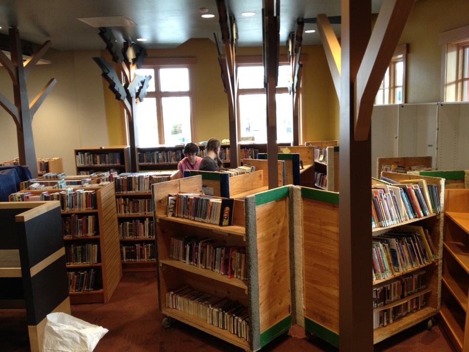 The past three weeks have been absolutely insane. We moved a library. Imagine moving your house. It is, like, a billion times harder and more stressful than that. I am completely exhausted, frankly. The adrenaline rush is over and I am coming down. There isn’t much to say about it except I am glad it is over. We are in our beautiful new home and are getting settled. I love it. As I mentioned, my desk is right out in the middle of things and I am very busy all day helping people. It’s great! It’s the whole reason why I wanted to be a librarian in the first place. I especially love interacting with the kids after school. I’m very happy. I think I will take some photos tomorrow of our grand opening. Then you will be able to see it in it’s finished state. Here is a gallery of photos of the moving process.