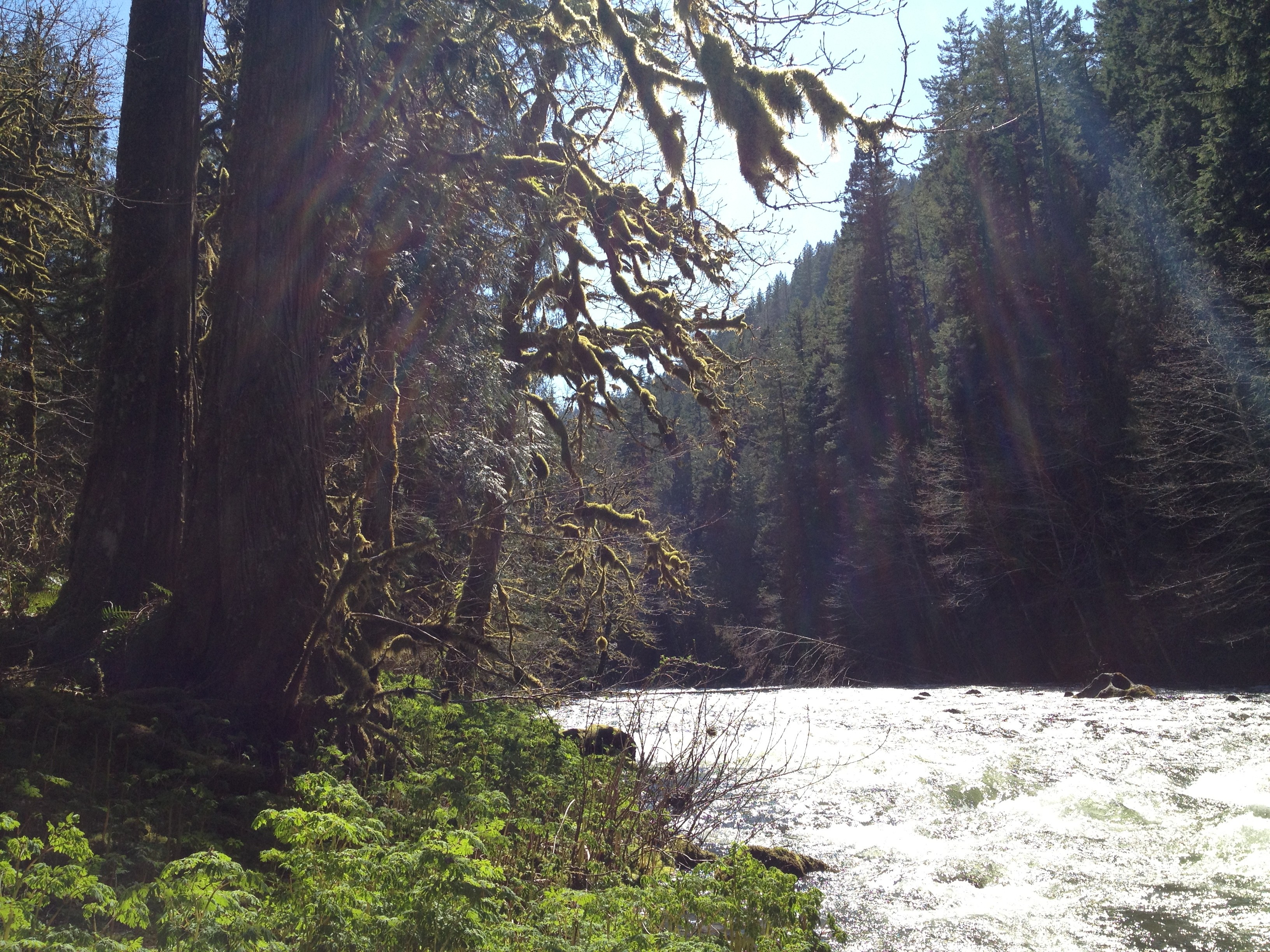Afterward we decided to check a cabin that is for sale, cheap, in Rhododendron (a little community up on Mt. Hood.) Oh. My. God. It is right on the river and it is the most beautiful spot ever. And now I want to buy a weekend cabin.