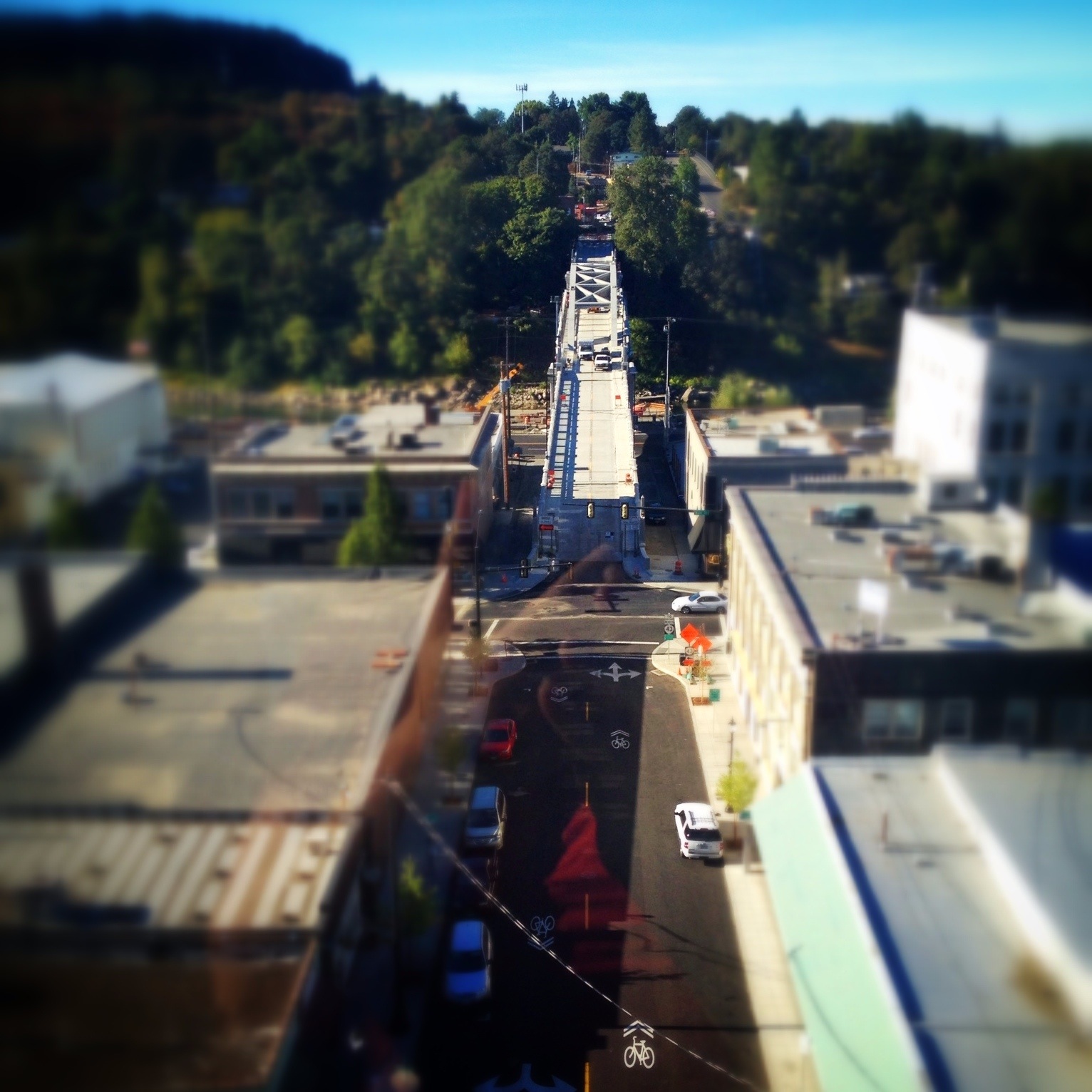 When we were ready to head back to the car we discovered that they have a really cool “Municipal Elevator” that gives tired people a lift up to the bluff (where we parked). The photo above is the view from the top. From there we discovered that there was a Willamette Falls and followed the signs to find this: