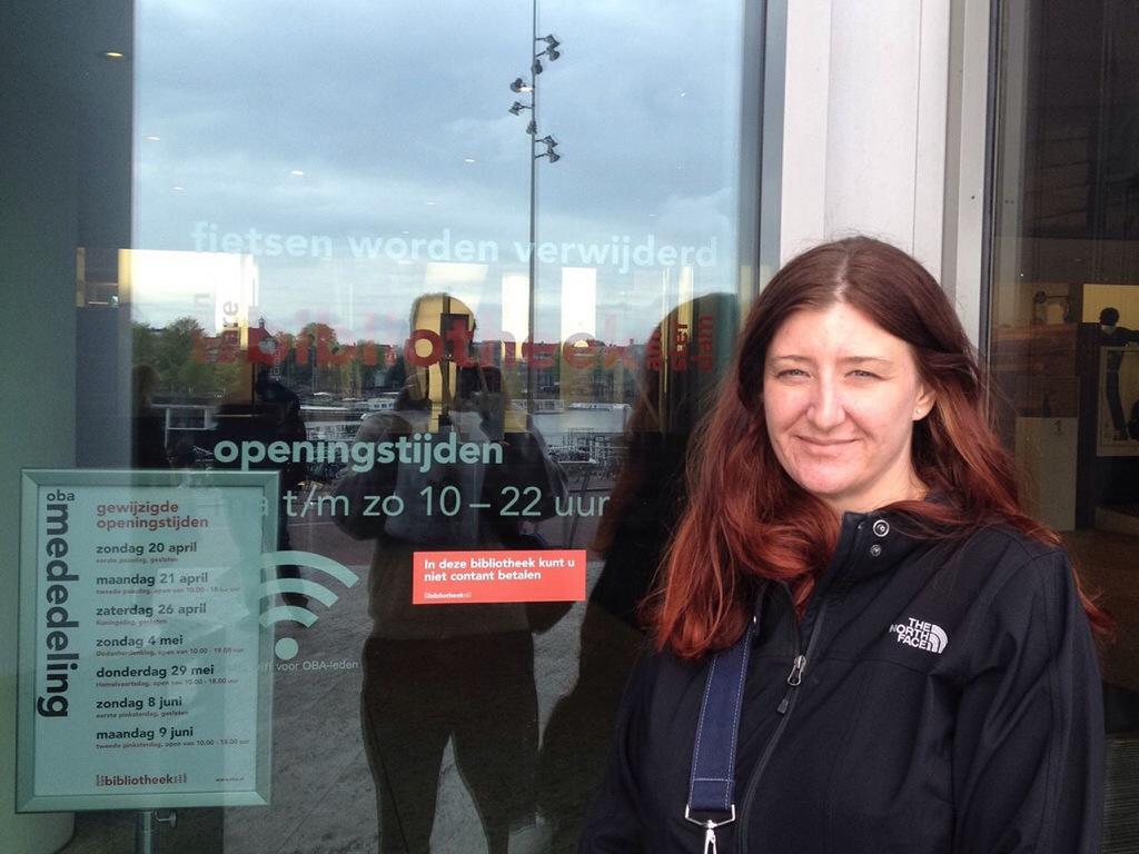 We went inside and Oh. My. God. This is the most amazing library I have ever seen. There was an entire floor devoted to music – and they were actually playing music at the desk! The Art collection was spectacular. There was a PINHOLE display on one of the floors. There is a cafe on the top floor AND there is a bar. I want to work at this library. Raf and I were also amused that they also used the Dewey Decimal system and we will be sure we tell our students about this when we teach about it. Honestly, it’s kind of awesome that it is used all over the world.