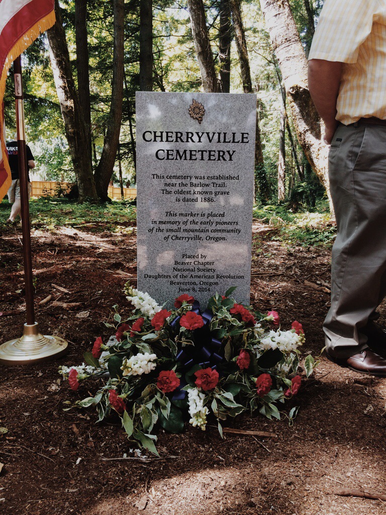 Sunday was a dedication ceremony for the cemetery. The monument above was placed by the National Society of the Daughters of the American Revolution (Beaverton Chapter). The cemetery is now an historical landmark. Two  years ago it was being swallowed up by the Oregon forest. Now it is protected by the State of Oregon.