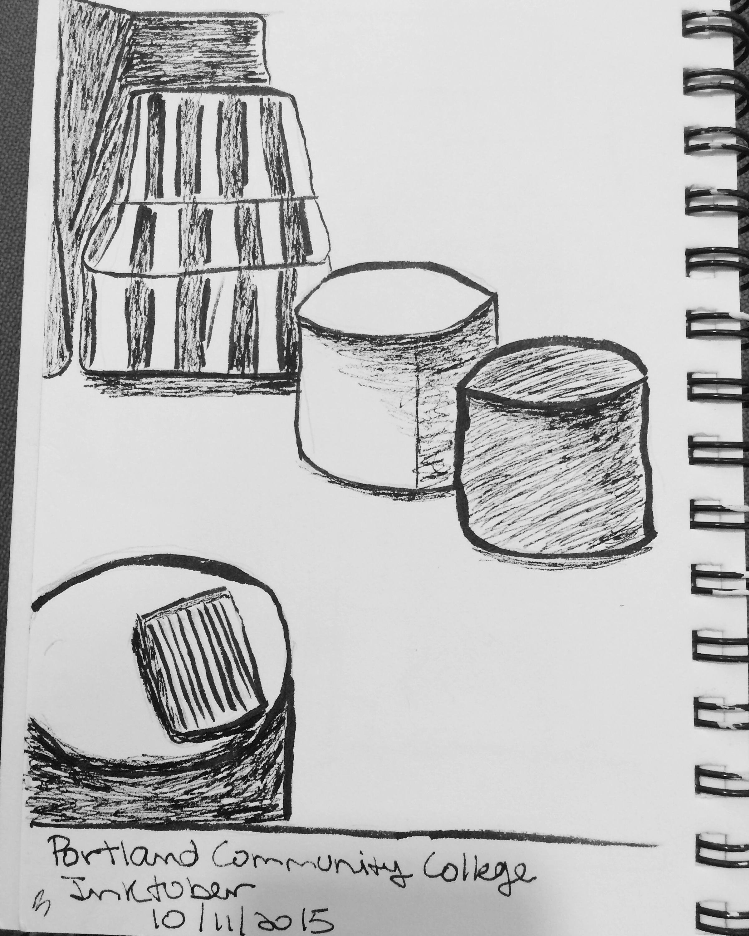 Last weekend I decided to bring my sketchbook out with me, my first time sketching in public. I sketched this while waiting for my husband to get off work in the library at Portland Community College.