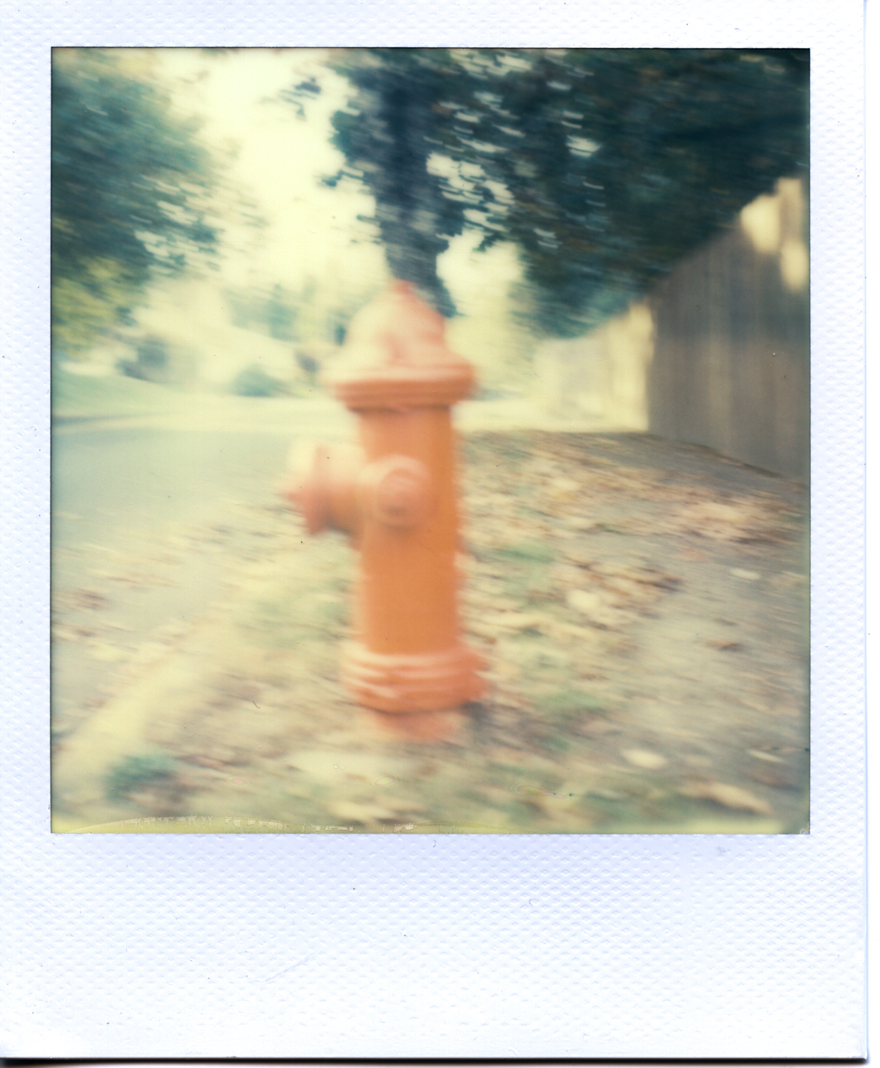 Continuing with the Polaroid Week, theme: I learned through the Twitters that this past Saturday was World Toy Camera Day. I remembered that I had an instant back for my Holga and there was film in it! Yay! I could kill two birds with one stone! So I carried it with me to work to see what I could snap. I found my favorite fire hydrant and took a picture of it. Β And then immediately learned that this was the last shot of the pack. I carried it with me to work and peeled it apart and found that I was shooting the sought-after Fuji FP-3000. And that was it. My last shot ever with this film. It kind of sums up my experience with it. It was a frustrating and disappointing ride. I gave my last pack away to my buddy Marisa and I am glad I did because I know it is much more capable hands. π
