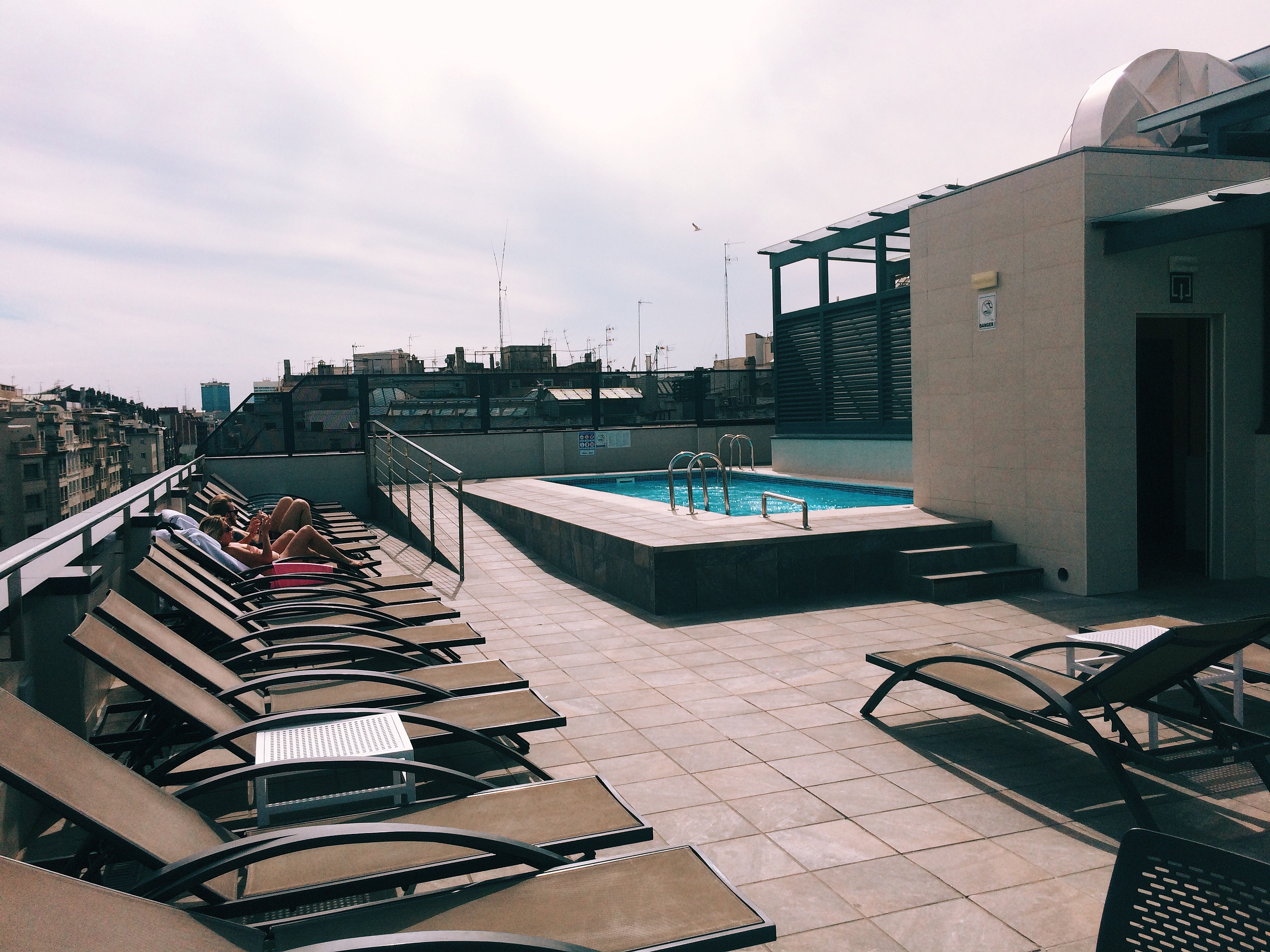 We finally boarded the plane and upon takeoff, I fell asleep. A few hours later I woke up in Barcelona. We made the epic journey to our hotel room and decided to go for a walk. First we went up to the roof to check out the pool.