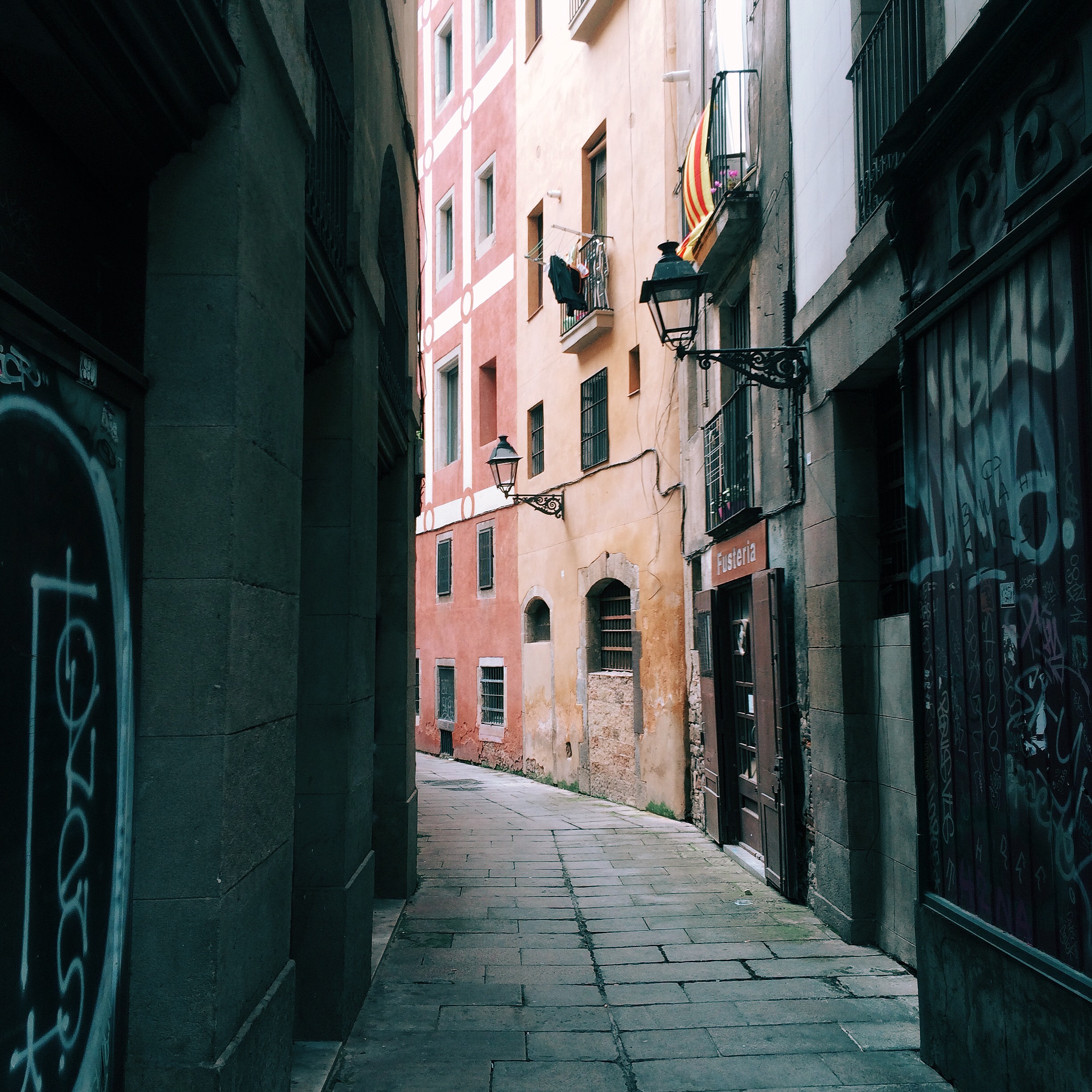 When I woke up this morning and looked at the clock I couldn’t believe my eyes. It said 11:45 am. We’d practically slept the day away!! Honestly, I could have slept longer but we forced ourselves to get up and get out there. We decided to go to the Picasso Museum. On our way there, Google took us on an amazing adventure through some narrow alleyways.